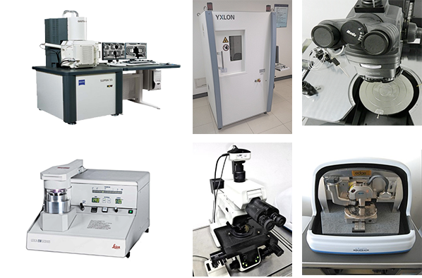 以完备和先进的化学、物理实验室分析装备为基础(AFM、RIE/IBE刻蚀机、X-Ray、SEM、TEM、FIB、SIMS、EMMI、高精度探针台等),对5nm以上工艺线宽各类型IC产品进行物理分析及电学测试,可提供封装结构分析、制造工艺分析、IC失效分析和图像采集等服务。 | |