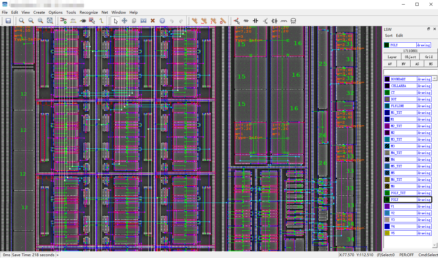 基于拼接、对准后的IC图像数据,在集成先进算法的网表提取软件中,可实现自动提线、自动提孔、自动单元搜索等功能,减少工作量;可支持多人协作同一项目,缩短项目工期;采用通用性高的OA数据格式,兼容Cadence6.0及以上版本。 |