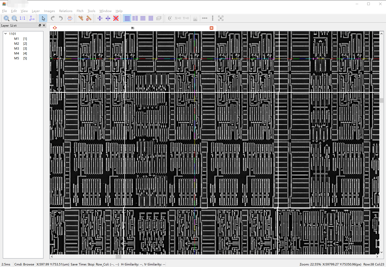 可支持TB级数据图像拼接,人工干预少,图像清晰、稳定。图像自动拼接与对准软件内嵌先进的数据模型及求解算法;同层海量图像自动拼接;异层精确对准;根据原芯片Pitch,使用先进的算法将图像数据还原至正向规则。 |