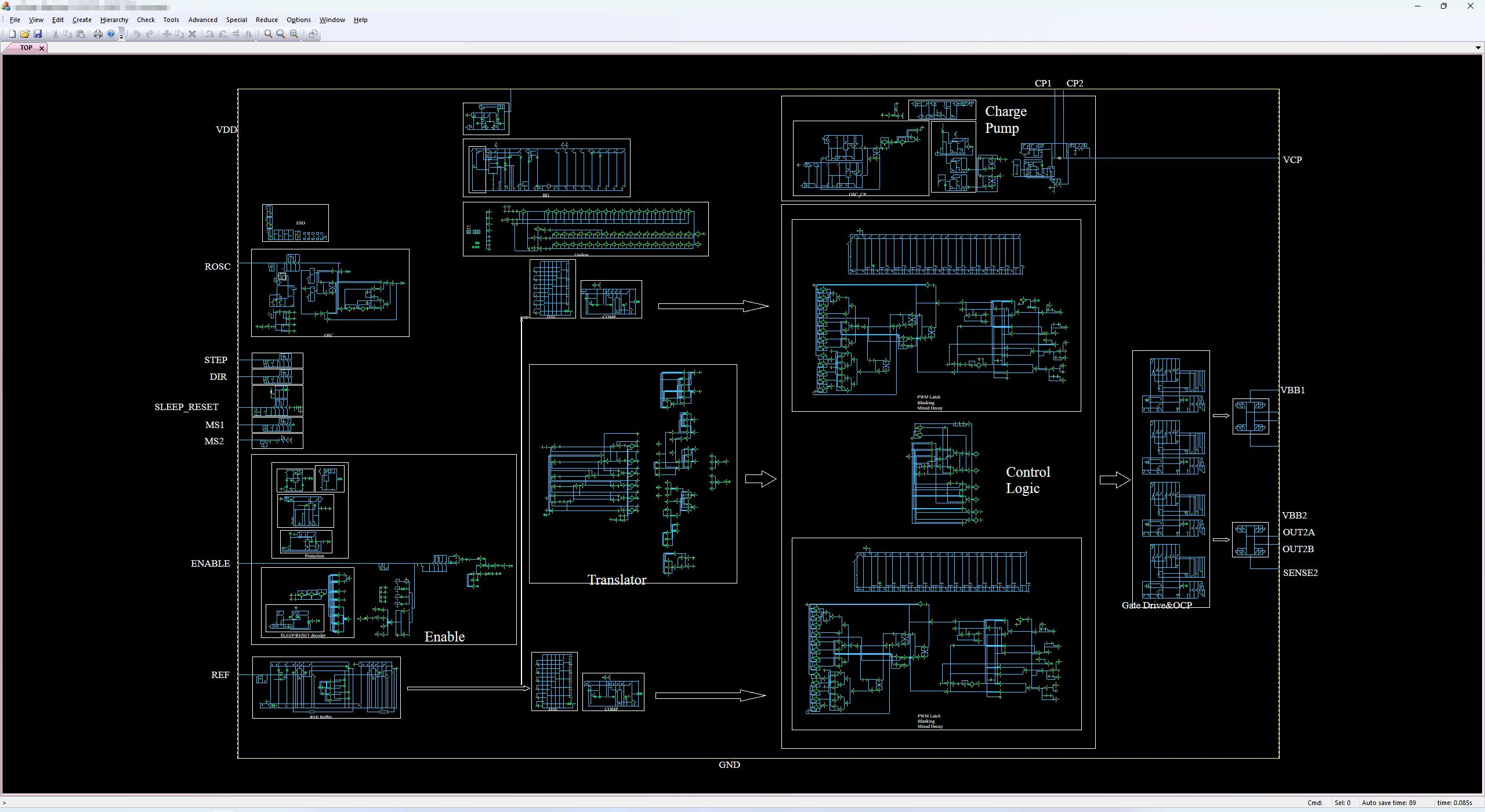 根据电路连接关系,可自下而上重构出层次化电路结构。新建、解散单元时,保持电路连接关系不变;集成子电路同构匹配算法,提高电路整理效率和质量;电路数据兼容市场主流EDA软件。 |